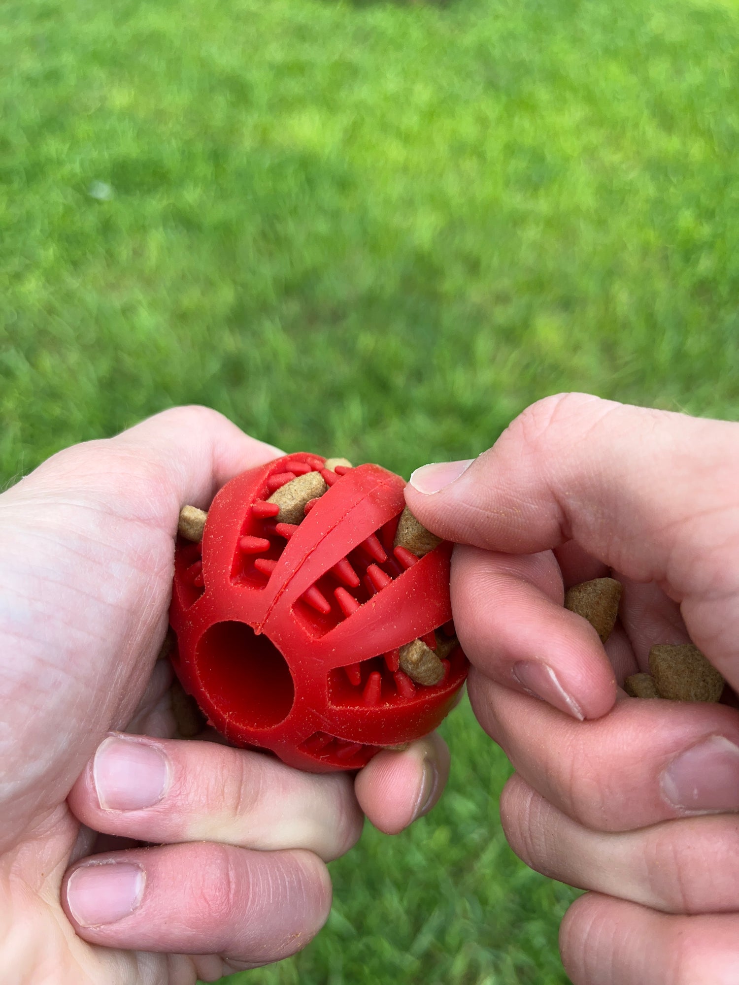 - Promotes Physical & Mental Health - By figuring out how to get to the treats, their brains are stimulated while intensely chewing/playing with the ball.