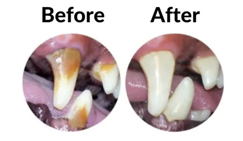 Dogs love chewing stuff. Why not make use of it and give them to keep on gnawing, while making their teeth clean at the same time. Results aren't immediate, so any signs of change may come within 2-4 weeks. Rinse your pets teeth for healthier results.